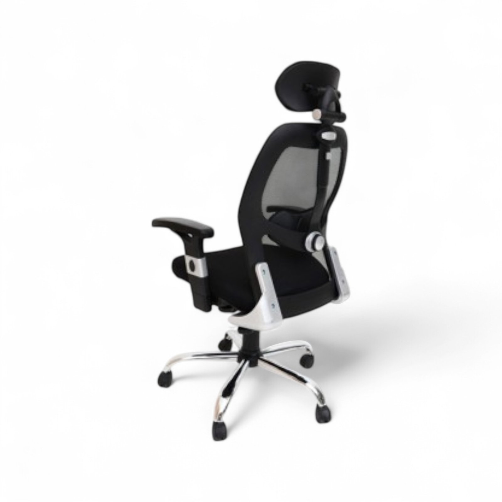 Chaise de Direction New confort Noir Base Chrome-Mécanisme Synchrone-Têtière Réglable-Dossier Filet avec un cousin lombaire-Accoudoirs Réglables
